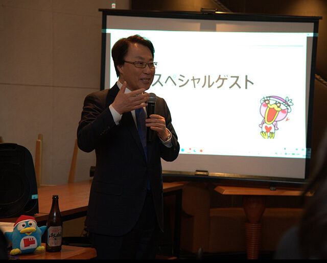 パーティーの最後を飾ったのは、会場にサプライズで現れたアサヒビールの松山一雄社長です。